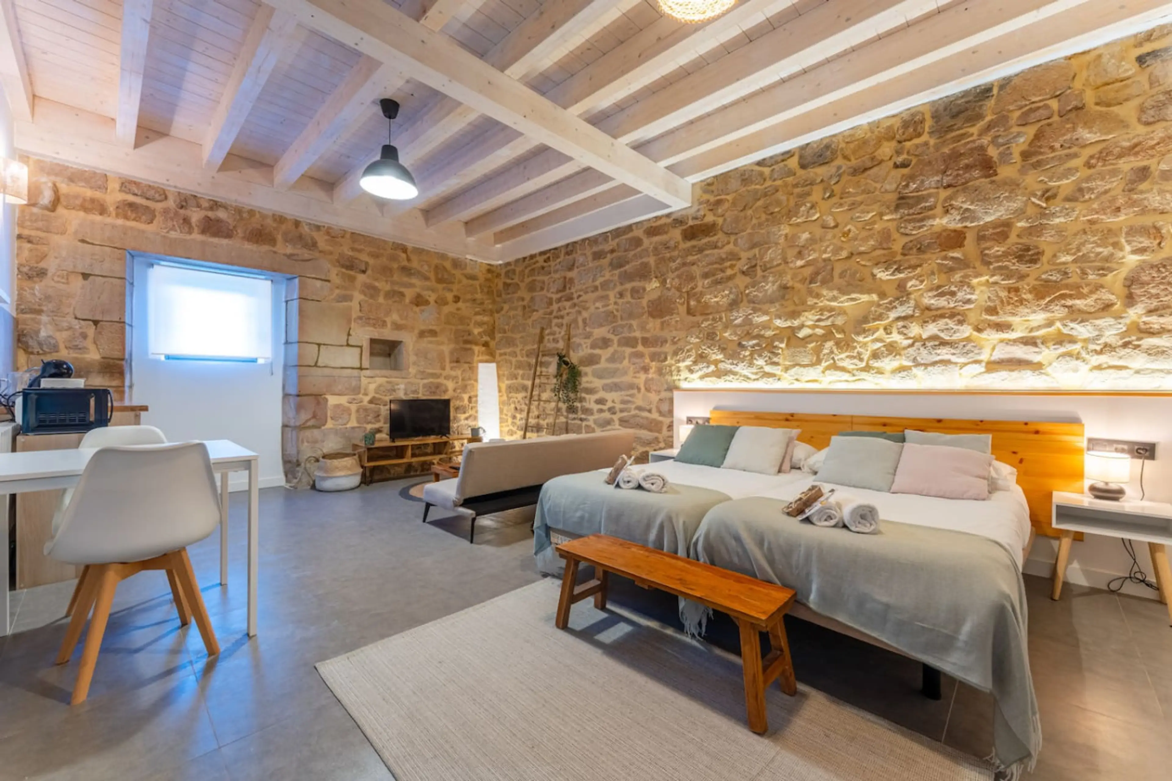 Apartamento acogedor, ubicado dentro del Palacete de Sandoñana 🏰, un edificio histórico de piedra del siglo XVII cuidadosamente restaurado, en un entorno rural y tranquilo de los Valles Pasiegos de Cantabria. Dispone de 2 camas individuales y un sofá cama individual (solo para 1 niño), baño privado...