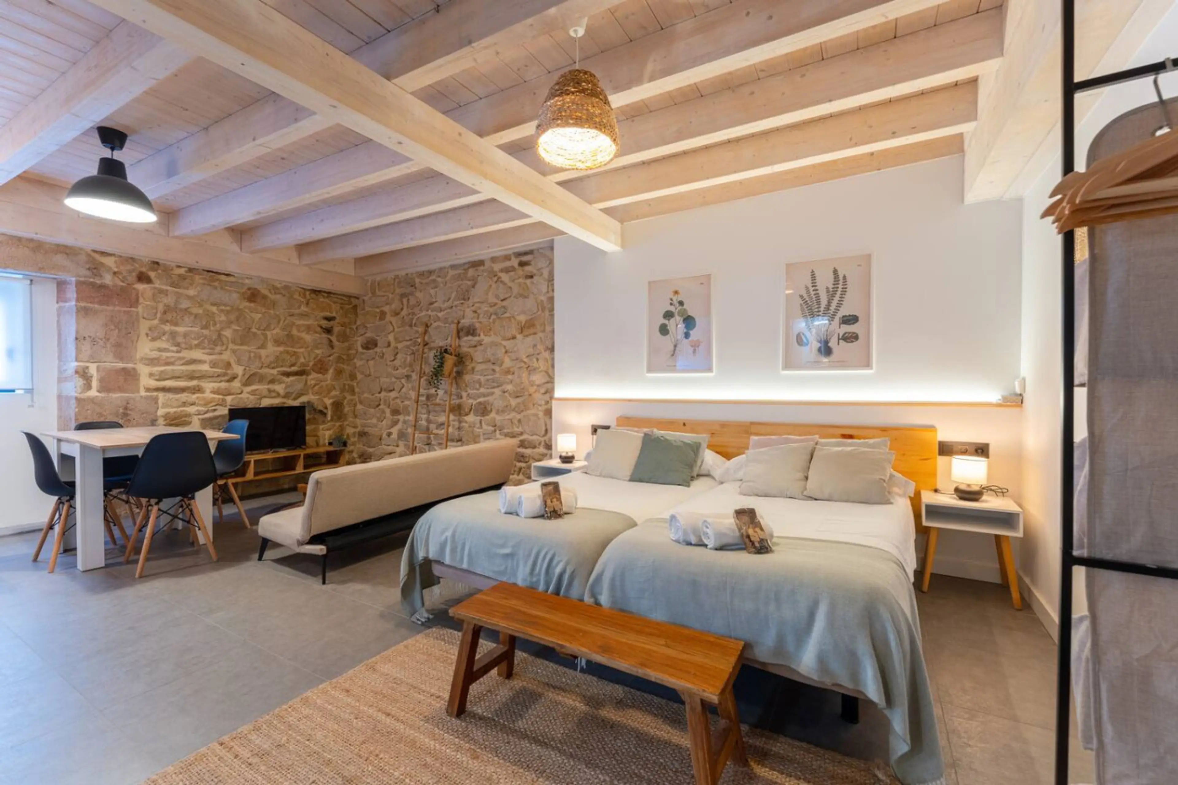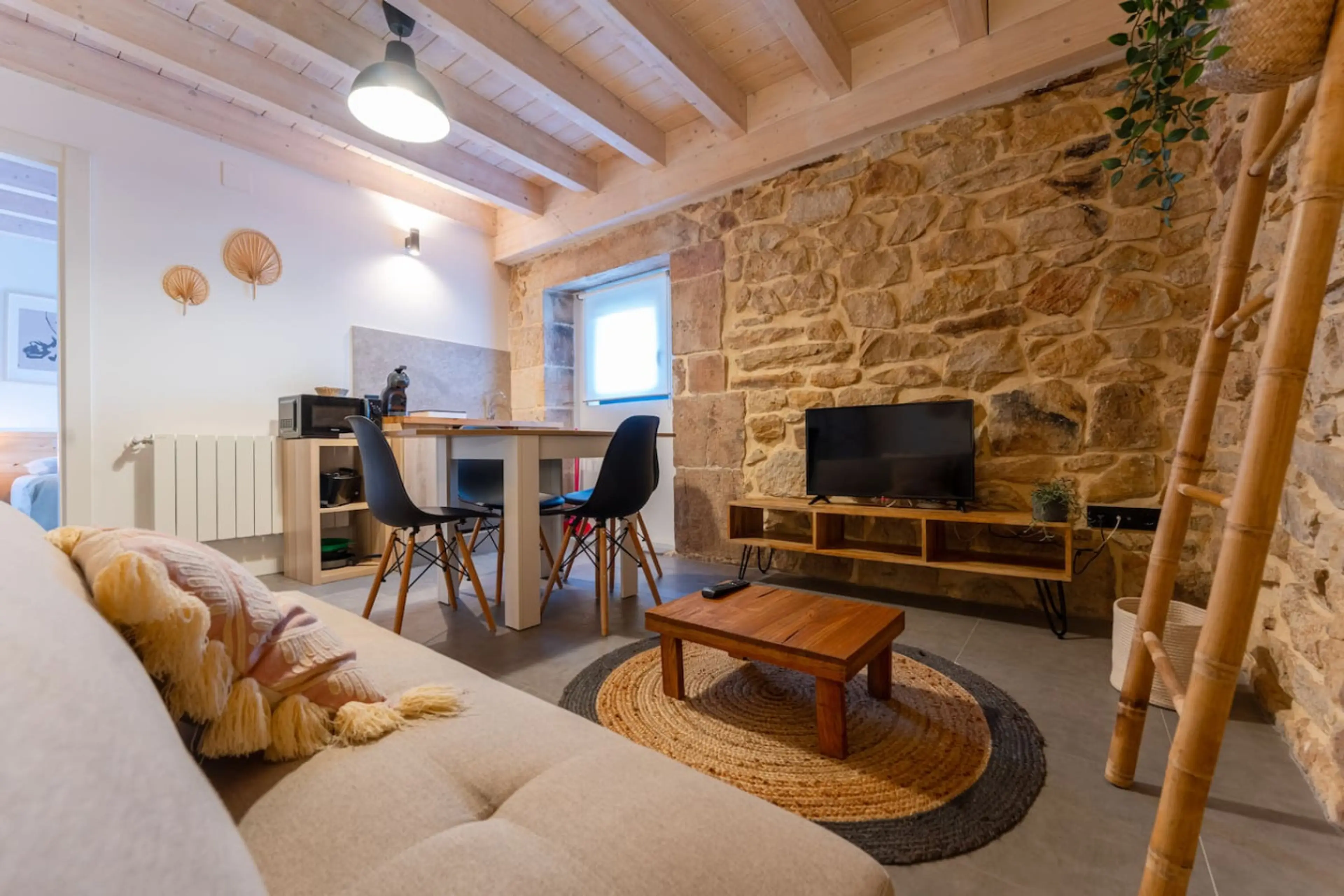 Apartamento acogedor, ubicado dentro del Palacete de Sandoñana, un edificio histórico de piedra del siglo XVII cuidadosamente restaurado, en un entorno rural y tranquilo de los Valles Pasiegos de Cantabria. Con 4 camas: 1 matrimonial 2 individuales y un sofá cama individual (apto para niño 12 años),...